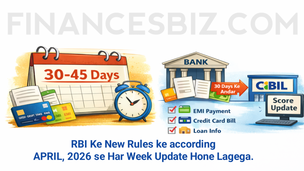 - Naye Niyam (April 2026 se): Bhartiya Reserve Bank RBI ke naye niyamon ke anusar credit buro Jaise cibil aabhar 15 din ki jagah, Har Hafte data prapt Karenge. Jisse score mahine Mein 5 bar refresh hoga.